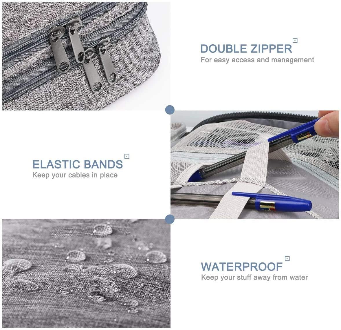 👍【Well Protected】 – This cable case is made of waterproof nylon material. Strong and durable material with the padded foam around to protect all the things inside well against scratches, dust, impacts, and accidental dropping.Double zipper design, easy opening, and immediate access.
